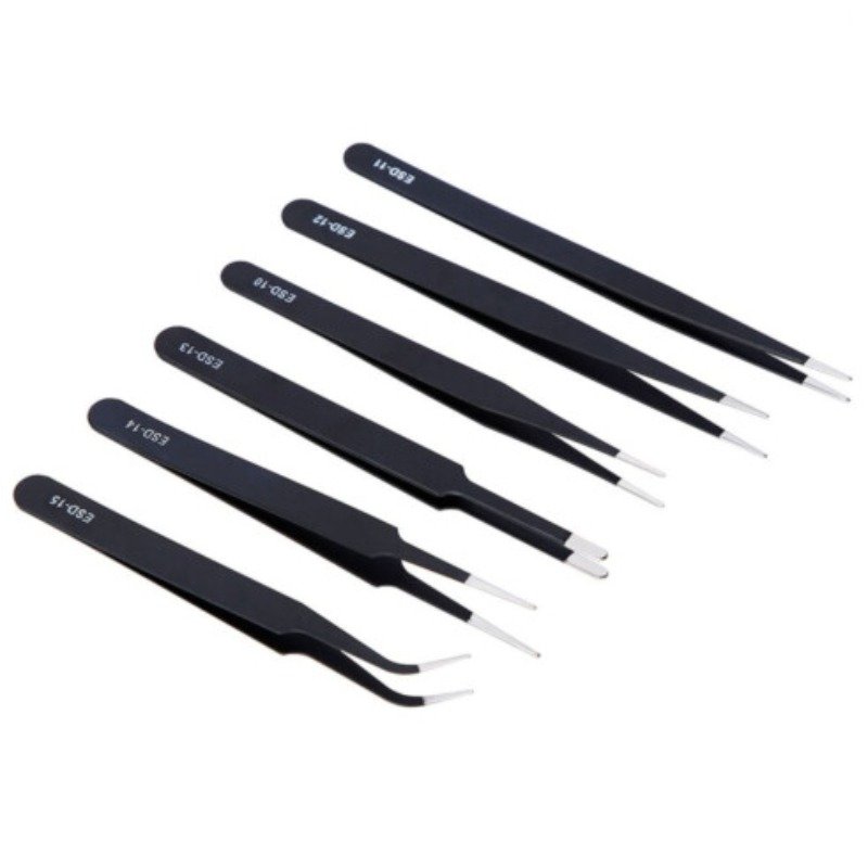 CONTEÚDO DA EMBALAGEM: 06 x Pinças Antiestáticas (ESD-10, ESD-11, ESD-12, ESD-13, ESD-14, ESD-15) em estojo PVC.