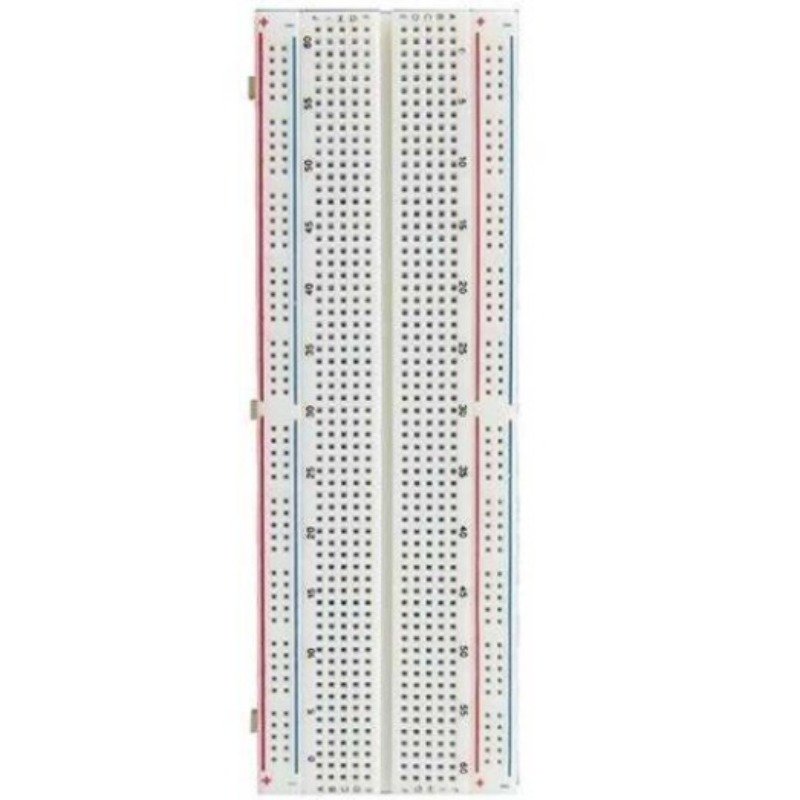 Este protoboard é ideal para quem procura algo simples e barato, mas sem abrir mão de um bom produto. Possui 830 pontos com barras de distribuição demarcadas e a parte de trás é adesiva, permitindo assim colocar em superfícies diversas.