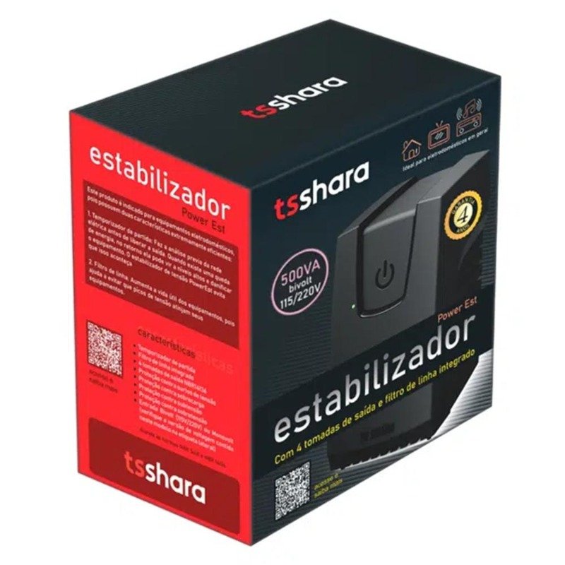 Estabilizador TS Shara Powerest 300VA, 4 Tomadas, Saida 115V, Entrada Bivolt, Preto