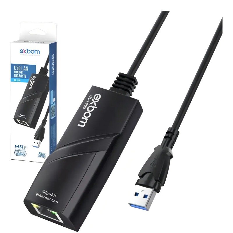 Adaptador de Rede USB 3.0 RJ-45 Placa de Rede Gigabit 10/100/1000mbps Exbom UL-1200 Compatível com Pc e Notebook Para Windows MacOS e Linux