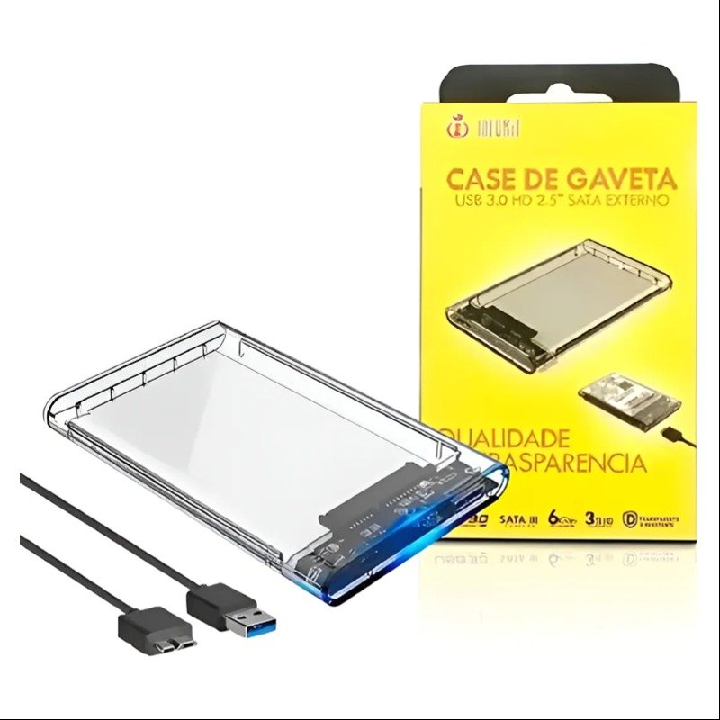 Case USB 3.0 de HD SATA 2.5' Externo Resistente e Transparente Infokit Ecase-320